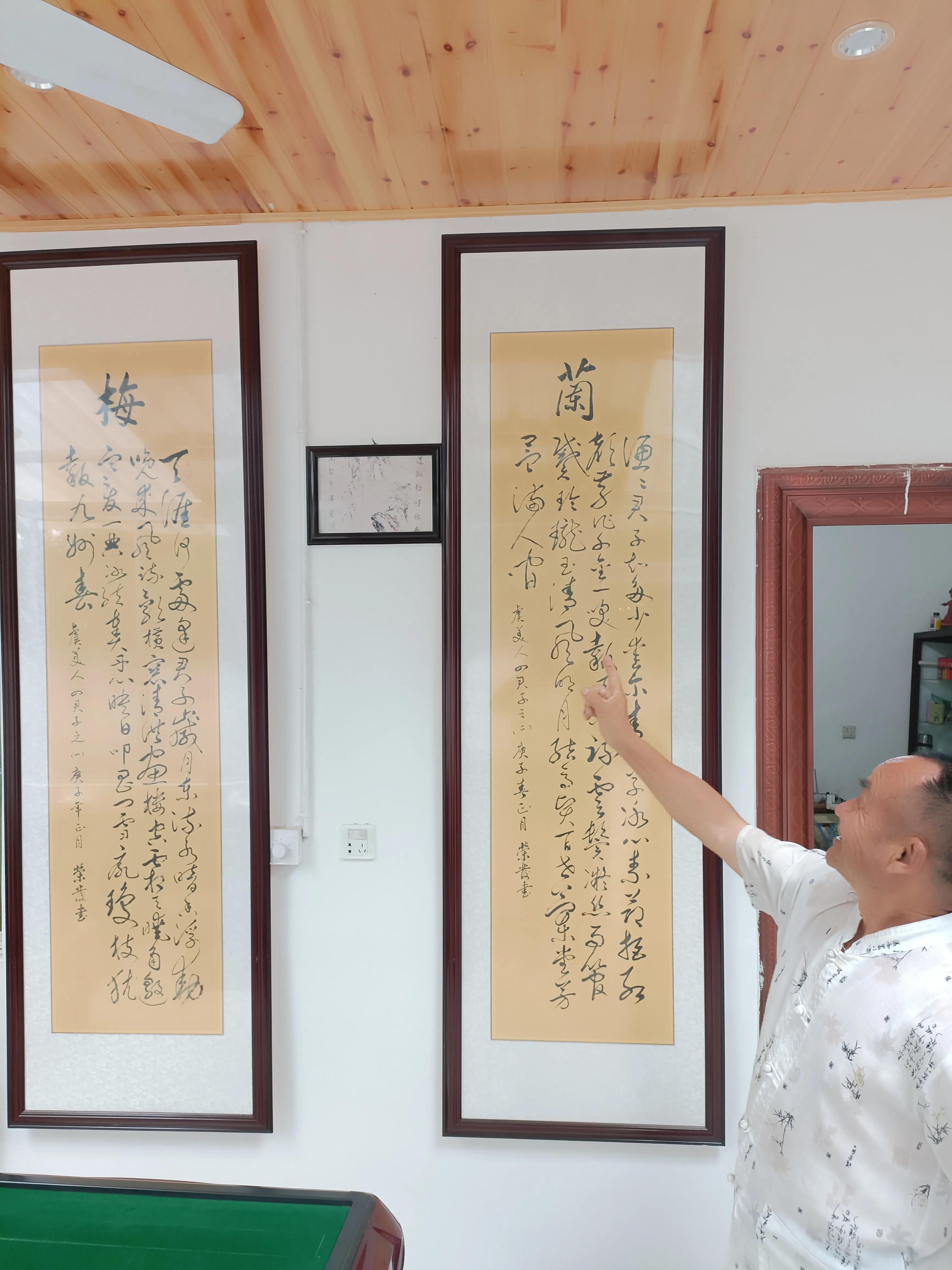 2022年6月13日中午:四川鸿福星科科技新闻网、专家联谊服务团、讲师团、教育咨询服务部、特艺培训部、(现任四川省科技新闻学会党支书记、联合国华商大学科技新闻学院执行副院长、硕博士后连读生)等总负责人、农业专家、研究员、采编:胡高维。深入我家:彭州市敖平镇鹤泉村二组70号刘光烈、杨宗英的农村家庭工作室中,他并没有以职务身份来到我家户调研和实地采访,他而是:像亲兄弟情谊般的感受:一杯清茶、话桑蔴暢。谈起了近年来农村改革开放、脱贫致富、奔康、乡村振兴等方面的发展现况、和诸多方面的大好形势。同时,还对我家的发展进行了调研。他见到我房屋中的书法乡村文化:产生了好感:又见到那、书架上纸质发黄的旧书、是我当农民时的工具书。地转身又见闻我家住房中、四壁挂满了书法,但都是我同行、爱好书法的教师赠的作品。胡专家他来我的农村小院家中,真让我这个农家小院:增辉添彩。大大地有当年的:孟浩然(过故人荘)之感。如今的农村已不是过去的农村了(除:日出而作、日落而歇)的年代了,当今农村各方面,也是提升高了:乡村文化、生活的熏陶了。